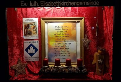 An allen Sonn- und Feiertagen finden Sie an einer Leine vor der Kirche kleine Andachten zum Mitnehmen. Wer keine Gelegenheit hat, einen Spaziergang zur Elisabethkirche zu machen, findet die jeweils aktuelle Andacht auch hier als pdf-Datei.