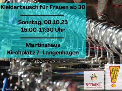 Es gibt sie wieder – die beliebte Kleidertauschbörse Ü30 im Gemeindehaus der Elisabethkirche. Am Sonntag, 8. Oktober, können Frauen hier Kleidungsstücke, von denen sie sich trennen wollen, gegen andere, die ihnen gefallen, eintauschen. Der Kleidertausch ist ein Kooperationsprojekt von „verbunT – Gemeinwesenarbeit in Langenhagen“ und Offener Gesellschaft Langenhagen.