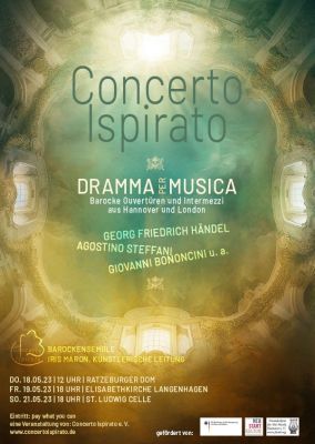 Dramma per Musica – der Titel des Konzerts, das das Barockensemble Concerto Ispirato aus Hannover am Freitag, 19. Mai um 18 Uhr in der Elisabethkirche Langenhagen zu Gehör bringt, ist Programm! Denn die professionellen MusikerInnen bringen mit ihren historischen Instrumenten Musik zum Klingen, die ursprünglich für die Oper komponiert wurde. „Wir möchten die ganze opernhafte Bandbreite der Gefühle zum Ausdruck bringen“, erzählt Iris Maron, die künstlerische Leiterin von Concerto Ispirato, „und besinnen uns gleichzeitig mit unserem Konzertprogramm auf unsere hannoverschen Wurzeln.“: Das Publikum erwartet ein abwechslungsreicher Abend mit Musik von bekannten Komponisten wie Georg Friedrich Händel, aber auch neu zu Entdeckendes von Komponisten wie Agostino Steffani, Attilio Ariosti und Jean-Baptiste Farinelly.