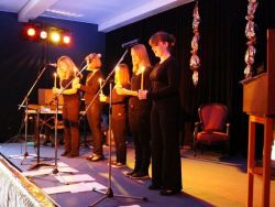 Eine musikalische Zeitreise der etwas anderen Art verband die Anwesenden auf wundersame Weise mit dem Leben und den Alltagssorgen der temperamentvollen Herzogin. Und so wurden die Showeinlagen zu Beginn des Abends – den Rita Kischlat als Elisabeth und Roman Sickau als Martin Luther überzeugend moderierten – zum Härtetest für die Lachmuskulatur: Superintendent Martin Bergau als Peter-Maffay-Double gab den eigens umgedichteten Klassiker „Und es war Sommer“ zum Besten. Die Eliza-Singers sorgten mit Unterstützung von Kantor Arne Hallmann für Stimmung und erläuterten, warum Elisabeth keine langen Kleider tragen sollte. Doch damit nicht genug: Bettina und Torsten Kröncke sorgten als Cindy und Bert für Stimmung. Eine extra für den Ball gegründete Mädchenband um Marie Lüders, Sophie Menzel, Nina Zander sowie Lina und Anne Kröncke präsentierte mittelalterliche Psalmtöne, AC/DC-Stücke und Lena-Meyer-Landruth-Interpretationen. Kurzum: Es lohnt sich, Herzogin Elisabeth zu feiern – manchmal sogar bis in den frühen Morgen.