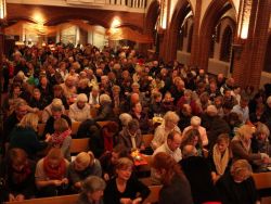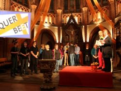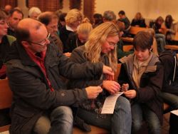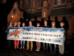 Zum 25. Querbeet Jubiläumsgottesdienst kamen wieder zahlreiche Besucher mit ihren Familien in die illuminierte Elisabethkirche und viele brachten auch ihre Freunde mit – passend zum Thema des Abends. Es musste etwas zusammengerückt werden, damit auch alle in der Kirche einen Platz fanden.