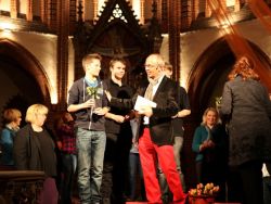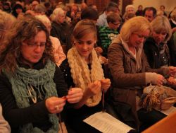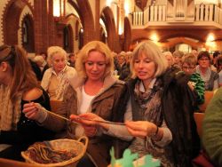 Dass es nicht immer unbedingt nur auf die großen Taten in einer Freundschaft ankommt, sondern es oft einfach die kleinen Dinge und Gesten sind, die eine Freundschaft ausmachen, wurde spätestens bei der Aktion zum Mitmachen deutlich. Zu der Musik der Band wurden bunte Wollbänder verteilt, aus denen die Besucher mit großem Engagement Freundschaftsbändchen flochten und teilweise gleich an Freunde weiter verschenkten. Am Ende des Gottesdienstes wurde den Teammitgliedern von Querbeet mit einer Rose gedankt. Die Erfolgsstory von den 24 vorangegangenen kreativen Querbeet Gottesdiensten konnte dann noch auf vom Beamer projizierten Fotos verfolgt werden. Der Ausklang mit Imbiss und Gesprächen wurde von vielen Besuchern gerne in Anspruch genommen.