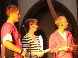 Der 11. Querbeet Abendgottesdienst mit dem Thema „Das Spiel des Lebens“ stand ganz im Zeichen der bald beginnenden Fußball WM. Die Kirche war wie immer bei Querbeet phantasievoll und ansprechend thematisch gestaltet. Der Gottesdienst begann mit eindrucksvollen Fotos einer Beamer Präsentation zum WM Song aus ganz unterschiedlichen Sichten rund um den Fußball. Weiter ging es mit einer witzigen Spielszene im Fußballstadion. Der Fan Steffen Grott raufte sich die Haare über die Leistungen seiner Fußballhelden auf dem Platz, als dann doch noch ein Tor geschossen wurde, jubelte er ausgelassen.
