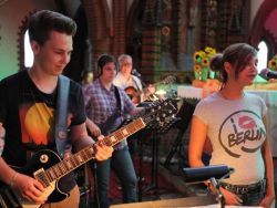 Die Gottesdienstbesucher waren wie immer aktiv dabei und bei der Mitmachgeschichte wirkten die Aaaahs, Oooohs und Buuuhs aus dem vollen Kirchenschiff sehr überzeugend, wie auch die Lösungsvorschläge beim Quiz. Die Kirchenband Lichtblick spielte viele aktuelle Songs zum Thema, die prima ankamen.