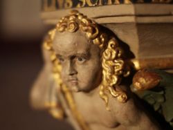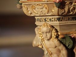 Die Sockelplatte trägt versteckt das Meisterzeichen Sutels und darunter die Inschrift: