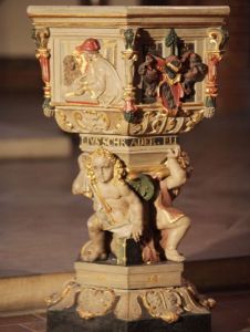 "In der letzten Zeit der alten Kirche hat er freilich ganz unbeobachtet und ungebraucht in einer Ecke hinter der Kirchentür gestanden und ist beim Abbruch der Kirche [1867] gleichsam neu entdeckt und seinem eigentlichen Zwecke zurückgegeben worden" – wie es in einem alten Bericht heißt.