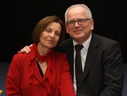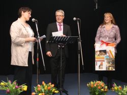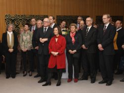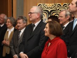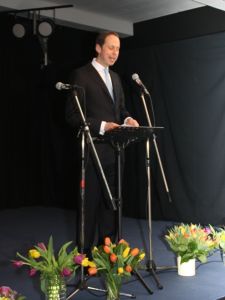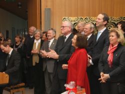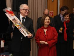 Minutenlang spendeten die Gäste des Empfangs, die den großen Saal im Martinshaus der Elisabethgemeinde bis auf den letzten (Steh-)platz füllten, ihrem Superintendenten zum Abschied Applaus. Die Mitarbeitenden in Kirchenkreis, Gemeinden und Einrichtungen hatten ebenfalls einen ganz besonderen Beitrag zum Abschied parat: Sie stimmten den alten Udo-Jürgens-Schlager „Merci Cherie“ in einer Version an, die eigens für das Abschiedsfest getextet worden war.