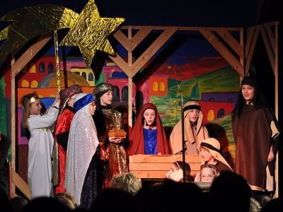 Heiligabend, Christvesper mit Krippenspiel, mit dem Kinderchor der Gemeinde, Pastorin Bettina Praßler-Kröncke und Pastor Torsten Kröncke