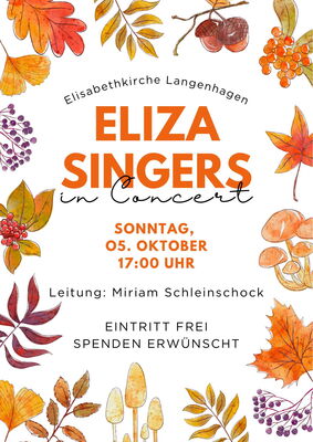 Die Eliza-Singers laden herzlich zu ihrem Konzert am Sonntag, 5. Oktober 2025 in die Elisabethkirche ein. Ab 17:00 Uhr erwartet Sie und euch ein abwechslungsreiches Programm unter der Leitung von Miriam Schleinschock.