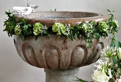 Pfingstsonntag, Open-Air-Gottesdienst und Tauffest im Eichenpark unter den großen Bäumen auf der Wiese gegenüber der Elisabethkirche, Pastorin Bettina Praßler-Kröncke und Pastor Torsten Kröncke