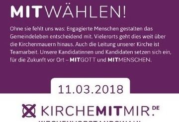 MITdenken, MITgestalten, MITarbeiten – mit diesen Begriffen werben wir für die Wahl unserer Kirchenvorstände am 11. März 2018. MITGesang, MITKuchen, MITSpaß – auch das gehört dazu. Und das Motto ist gut gewählt: In unserer Kirche ist das MITeinander ein echter