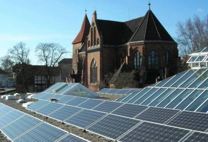 Unsere Photovoltaikanlage (72 PV-Elemente) steht auf dem Dach des Martinshauses. Seit Ende 2008 ist sie ans Stromnetz angeschlossen. Sie kann eine Spitzenleistung von rund 16 KW = 16.000 Watt erzeugen. Die Anlage wird Prognosen zufolge jährlich etwas 14.000 kWh an elektrischen Strom erzeugen.